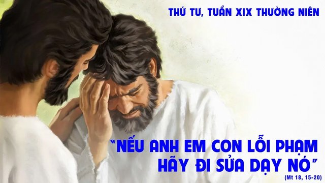 Khi ấy, Chúa Giêsu nói với các môn đệ: “Nếu anh em của con phạm tội, hãy đi sửa dạy nó, riêng giữa con và nó thôi. Nếu nó nghe con, thì con đã lợi được người anh em của con. Nếu nó không nghe, hãy đem theo một hoặc hai người nữa, để mọi việc được giải quyết nhờ lời hai hoặc ba nhân chứng. Nếu nó không nghe họ, hãy trình với cộng đoàn; và nếu nó cũng không nghe cộng đoàn, con hãy kể nó như người ngoại hay như người thu thuế.
