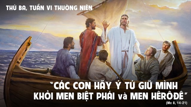 Khi ấy, các môn đệ quên mang bánh và chỉ còn một chiếc bánh trong thuyền. Và Chúa Giêsu dặn bảo các ông rằng: “Các con hãy coi chừng và giữ mình cho khỏi men biệt phái và men Hêrôđê”. Các môn đệ nghĩ ngợi và nói với nhau rằng: “Tại mình không có bánh”. Chúa Giêsu biết ý liền bảo rằng: “Sao các con lại nghĩ tại các con không có bánh? Các con chưa hiểu, chưa biết ư? Sao các con tối dạ như thế, có mắt mà không xem, có tai mà không nghe? Khi Thầy bẻ năm chiếc bánh cho năm ngàn người ăn, các con đã thu được bao nhiêu thúng đầy miếng bánh dư, các con không nhớ sao?” Các ông thưa: “Mười hai thúng”. – “Và khi Thầy bẻ bảy chiếc bánh cho bốn ngàn người ăn, các con đã thu được bao nhiêu thúng đầy miếng bánh dư?” Họ thưa: “Bảy thúng”. Bấy giờ Người bảo các ông: “Vậy mà các con vẫn chưa hiểu sao?”