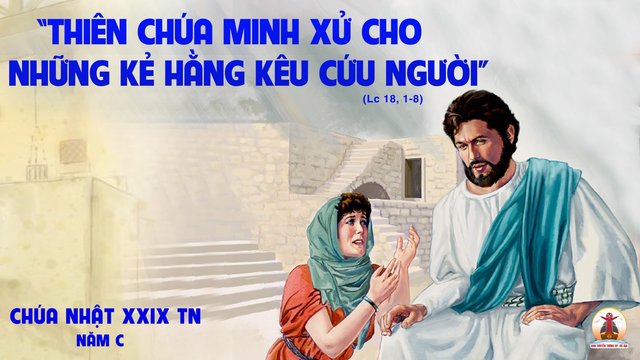 Khi ấy, Chúa Giêsu phán cùng các môn đệ một dụ ngôn, dạy các ông phải cầu nguyện luôn, đừng ngã lòng, mà rằng: “Trong thành kia, có một vị thẩm phán không kính sợ Thiên Chúa, cũng không kiêng nể người ta. Trong thành đó lại có một bà goá đến thưa ông ấy rằng: ‘Xin ông minh oan cho tôi khỏi tay kẻ thù’. Trong một thời gian lâu dài, ông không chịu, nhưng sau đó ông nghĩ rằng: ‘Mặc dầu ta không kính sợ Thiên Chúa, mà cũng chẳng kính nể người ta, nhưng vì bà goá này cứ quấy rầy ta mãi, nên ta sẽ xử cho bà ấy, kẻo bà ấy đến mãi làm ta nhức óc'”.