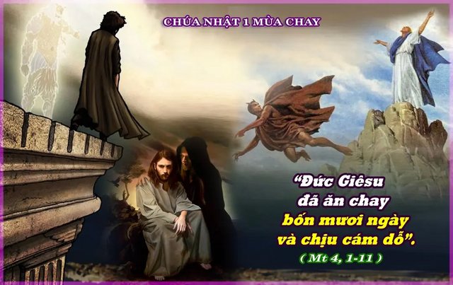 “Chúa Giêsu nhịn ăn bốn mươi ngày đêm, và chịu cám dỗ”.