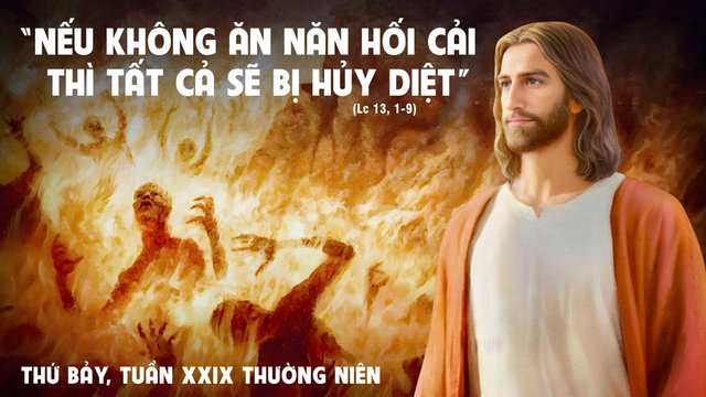 Khi ấy, có những kẻ thuật lại cho Chúa Giêsu về việc quan Philatô giết mấy người Galilê, làm cho máu họ hoà lẫn với máu các vật họ tế sinh. Người lên tiếng bảo: “Các ngươi tưởng rằng mấy người xứ Galilê đó bị ngược đãi như vậy là những người tội lỗi hơn tất cả những người khác ở xứ Galilê ư? Ta bảo các ngươi: không phải thế. Nhưng nếu các ngươi không ăn năn hối cải, thì tất cả các ngươi cũng sẽ bị huỷ diệt như vậy. Cũng như mười tám người bị tháp Silôe đổ xuống đè chết, các ngươi tưởng họ tội lỗi hơn những người khác ở Giêrusalem ư? Ta bảo các ngươi: không phải thế; nhưng nếu các ngươi không ăn năn hối cải, thì tất cả các ngươi cũng sẽ bị huỷ diệt như vậy”.