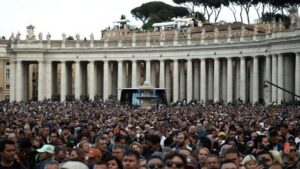 Hàng ngàn tín hữu tại Quảng trường Thánh Phêrô chờ đợi làn khói đầu tiên