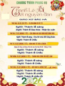 Giáo Xứ Bắc Hà, Hạt Phú Thọ, TGP. Sài Gòn : Chương Trình Phụng Vụ, Thánh Lễ Tết Bính Ngọ 2026