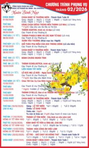Thông Báo : Giáo Xứ Thánh Đaminh – Ba Chuông, Hạt Phú Nhuận, TGP. Sài Gòn : Chương Trình Phụng Vụ Tháng 02/2026 Xuân Bính Ngọ