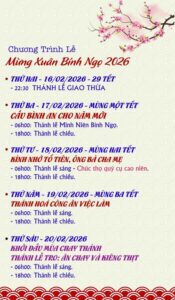 Giáo Xứ Bình Thọ, Hạt Thủ Đức, TGP. Sài Gòn : Chương Trình Thánh Lễ, Tết Nguyên Đán Bính Ngọ – 2026