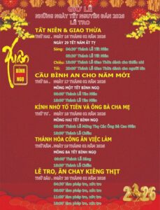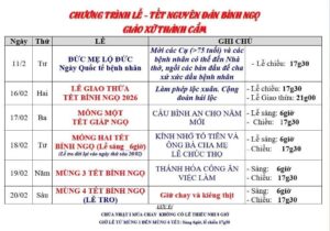 Giáo Xứ Hợp An, Hạt Xóm Mới, TGP. Sài Gòn : Lịch Phụng Vụ, Tết Bính Ngọ 2026