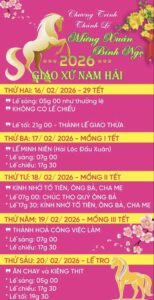 Giáo Xứ Nam Hải, Hạt Bình An, TGP. Sài Gòn : Chương Trình Thánh Lễ, Mừng Xuân Bính Ngọ 2026