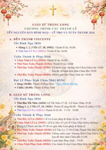 Giáo Xứ Thăng Long, Hạt Phú Thọ, TGP. Sài Gòn : Chương Trình Các Thánh Lễ, Tết Nguyên Đán Bính Ngọ – Lễ Tro và Tuần Thánh 2026