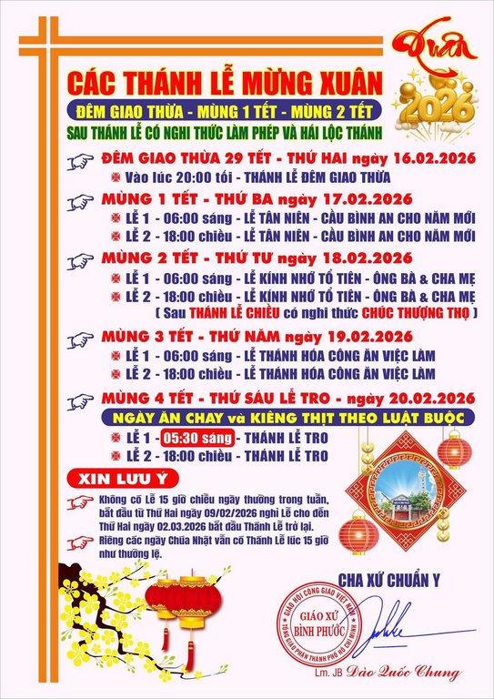 Giáo Xứ Bình Phước , Hạt Sài Gòn – Chợ Quán, TGP. Sài Gòn : Các Thánh Lễ, Mừng Xuân Bính Ngọ – 2026