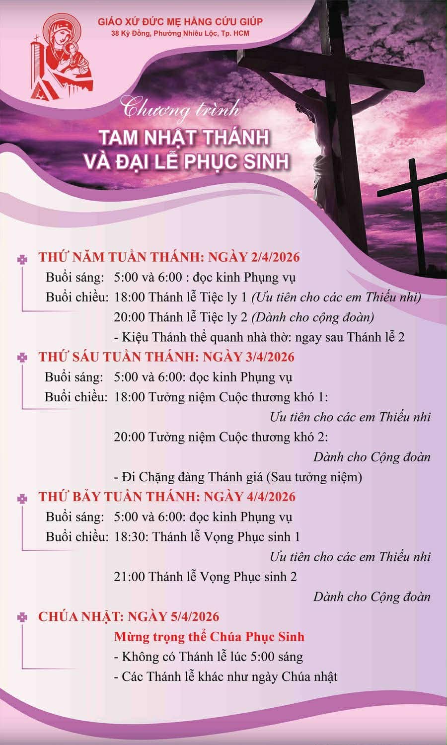 • Giáo Xứ Đức Mẹ Hằng Cứu Giúp, Hạt Tân Định, TGP. Sài Gòn : Chương Trình Tĩnh Tâm Mùa Chay, Tam Nhật Thánh & Đại Lễ Phục Sinh 2026