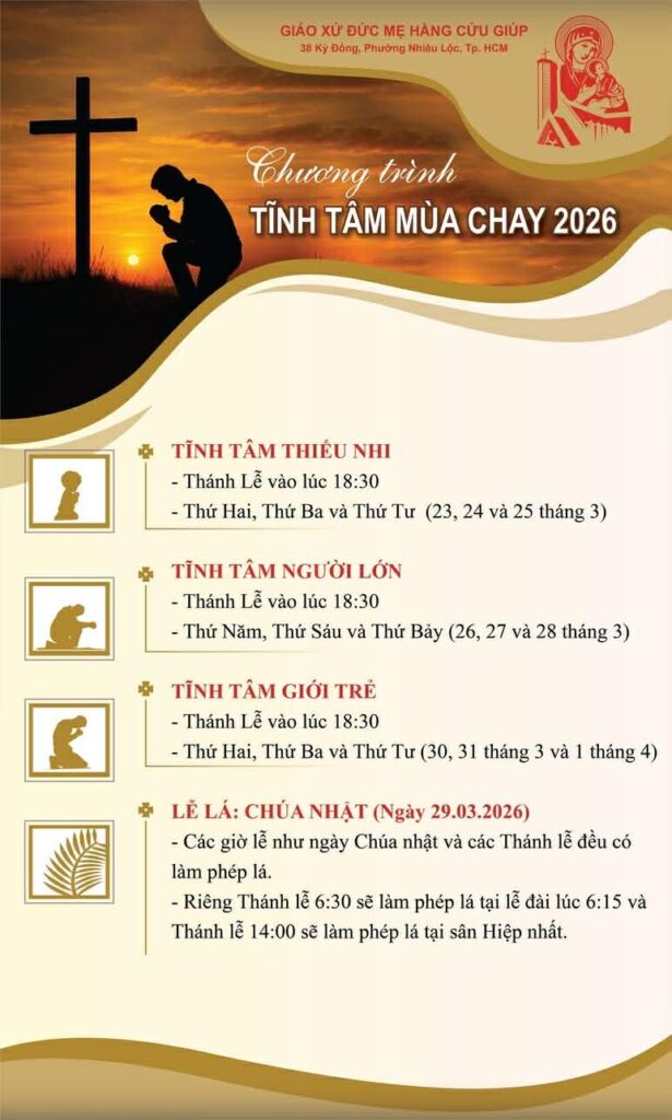 • Giáo Xứ Đức Mẹ Hằng Cứu Giúp, Hạt Xóm Mới, TGP. Sài Gòn : Chương Trình Mùa Chay & Tuần Thánh 2026