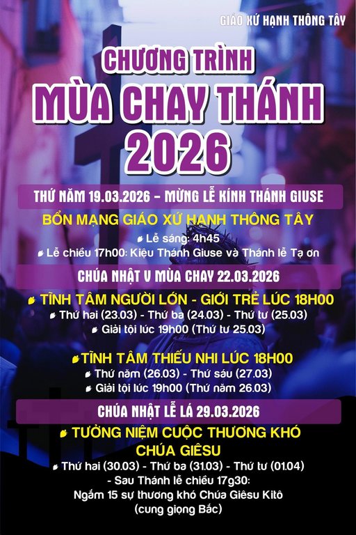 • Giáo Xứ Hạnh Thông Tây, Hạt Gò Vấp, TGP. Sài Gòn : Chương Trình, Mùa Chay Thánh Và Tam Nhật Thánh 2026