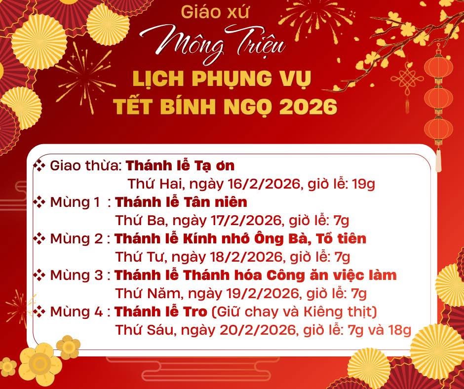 Giáo Xứ Mông Triệu, Hạt Bình An, TGP. Sài Gòn : Lịch Phụng Vụ, Tết Bính Ngọ 2026