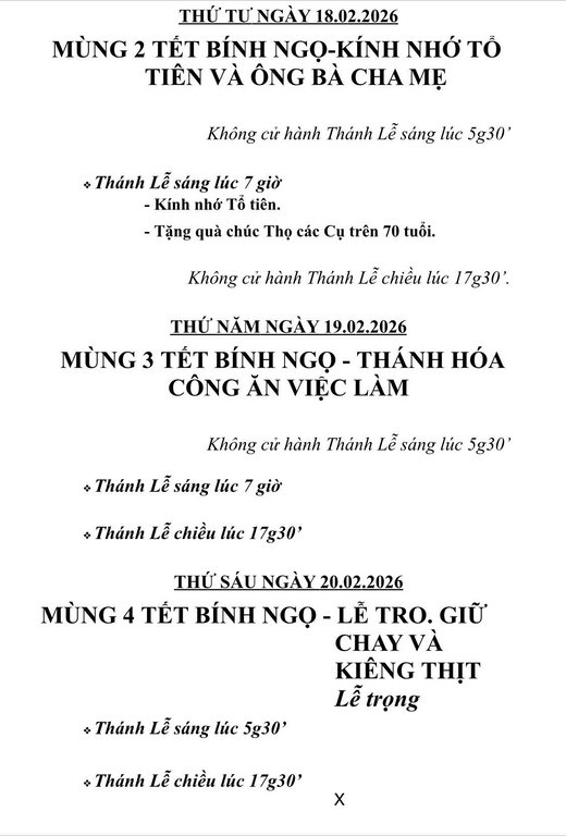 Giáo Xứ Phú Lộc, Hạt Phú Nhuận, TGP. Sài Gòn : Chương Trình Lễ Tết Nguyên Đán, Mừng Năm Mới Bính Ngọ 2026