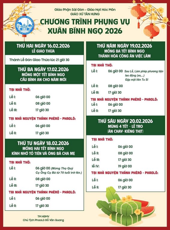 Giáo Xứ Tân Hưng, Hạt Hóc Môn, TGP. Sài Gòn : Chương Trình Phụng Vụ, Xuân Bính Ngọ 2026