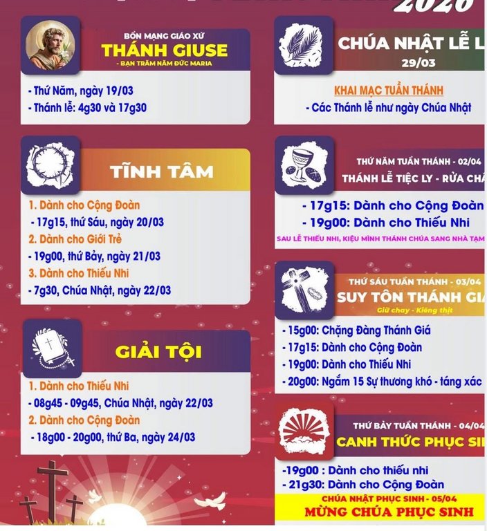 • Giáo Xứ Lạc Quang, Hạt Hóc Môn, TGP. Sài Gòn : Chương Trình Phụng Vụ, Tuần Thánh & Đại Lễ Phục Sinh 2026