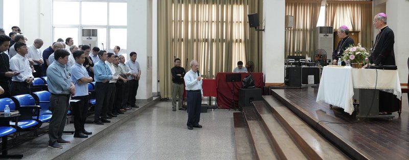 Sau khi suy niệm, cầu nguyện, xưng tội, chầu Thánh Thể và đọc Phụng vụ Giờ Kinh Trưa với nhau tại Đại chủng viện, các linh mục đã đi đến hội trường GB Phạm Minh Mẫn của Trung tâm Mục vụ TGP để lắng nghe Đức Tổng Giám mục Giuse nhắc nhở về: