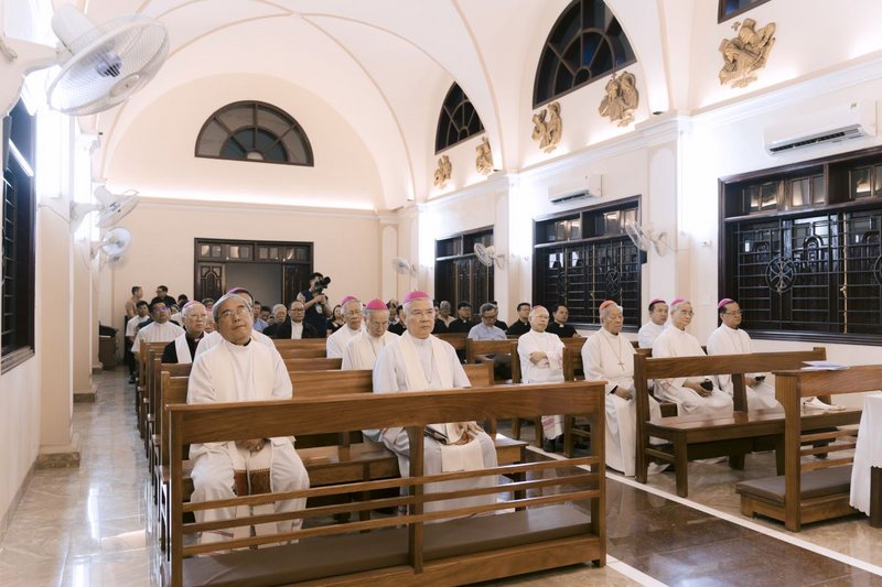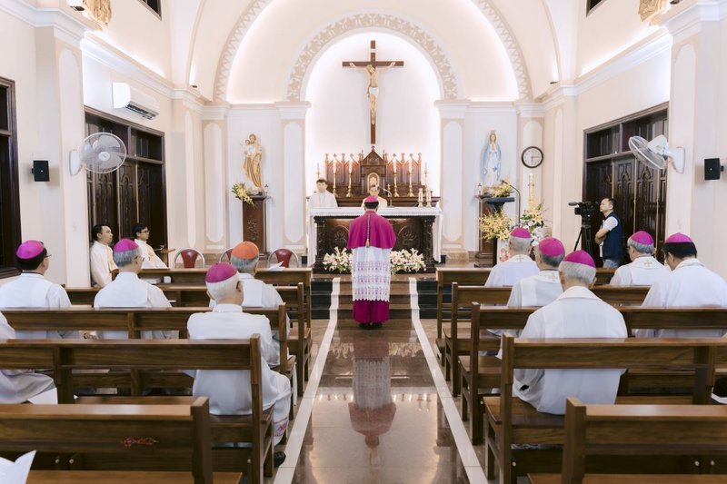 WGPHH (26/5/2025) – Vào lúc 18g00 thứ Hai, ngày 26/5/2025, tại Nhà Nguyện Tòa Giám mục Hưng Hóa, Đức Giám mục Phụ tá Tân cử Phaolô Nguyễn Quang Đĩnh đã tuyên xưng đức tin và tuyên thệ trung thành với Giáo Hội trong giờ Kinh Chiều.