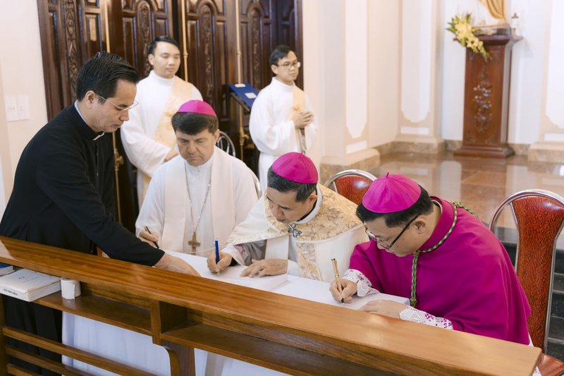 Liền sau đó, Đức cha Tân cử Phaolô, Đức cha Đaminh và Đức TGM Marek Zalewski đã ký vào Bản tuyên xưng đức tin và tuyên thệ trung thành mà Đức cha Tân cử vừa đọc.