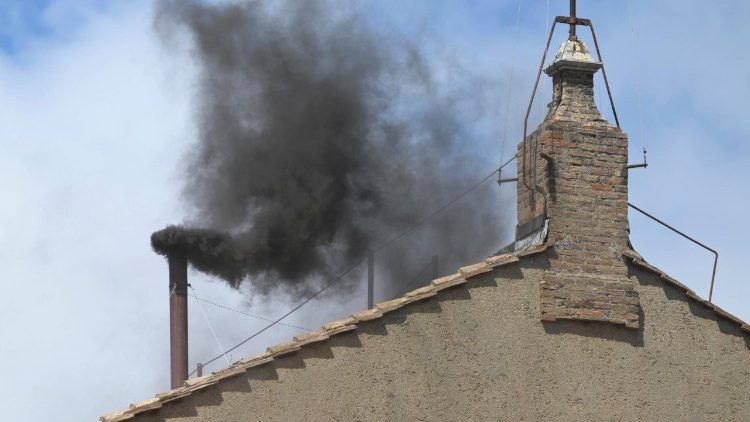 Lúc 11:51 trưa, các tín hữu hiện diện tại Quảng trường Thánh Phêrô, cũng như nhiều người từ khắp nơi trên thế giới đang theo dõi qua các phương tiện truyền thông, đã nhìn thấy luồng khói đen phát ra từ ống khói trên mái Nhà nguyện Sistine, dấu hiệu cho biết sau 2 lần bỏ phiếu các Hồng y vẫn chưa bầu được Giáo hoàng mới.