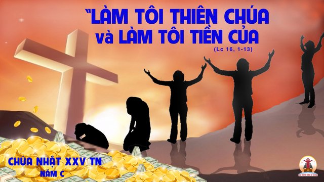 Giáo huấn của Chúa Giêsu của ngày Chúa Nhật XXV Thường Niên Năm C hôm nay, vể tiền của là rất rõ ràng người ta không thể cắt nghĩa siêu vẹo theo ý riêng của mình được: “Không đầy tớ nào có thể làm tôi hai chủ: vì hoặc nó ghét chủ này và mến chủ kia; hoặc phục chủ này và khinh chủ nọ. Các con không thể làm tôi Thiên Chúa mà lại làm tôi tiền của được” Tiến của là thứ rất cần thiết và hữu ich cho cuộc sống con người. Nhưng tiền của cũng có thể biến người tín hữu thành những kẻ nô lệ. Chúa Giêsu không muốn chuyện ấy xẩy ra nên đã chỉ vẽ cách sử dụng tiền của một cách hửu ích nhất: “Hãy dùng tiền của gian dối mà mua lấy bạn hữu, để khi mất hết tiền bạc, thì họ sẽ đón tiếp các con vào chốn an nghỉ đời đời.”