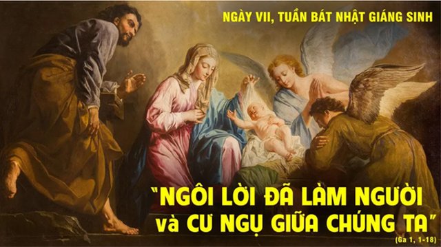 Và Ngôi Lời đã hoá thành nhục thể, và Người đã cư ngụ giữa chúng tôi, và chúng tôi đã nhìn thấy vinh quang của Người, vinh quang Người nhận được bởi Chúa Cha, như của người Con Một đầy ân sủng và chân lý.