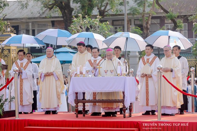 Ngoài HĐGM, đồng tế trong Thánh lễ còn có các Linh mục Hội Thừa sai Paris, các Linh mục thuộc TGP Huế, Giáo phận Thanh Hoá, Giáo phận Đà Nẵng và nhiều Giáo phận trong nước và hải ngoại. Sốt sắng hiệp dâng Thánh lễ có đông đảo Tu sĩ nam nữ, Chủng sinh và anh chị em giáo dân.